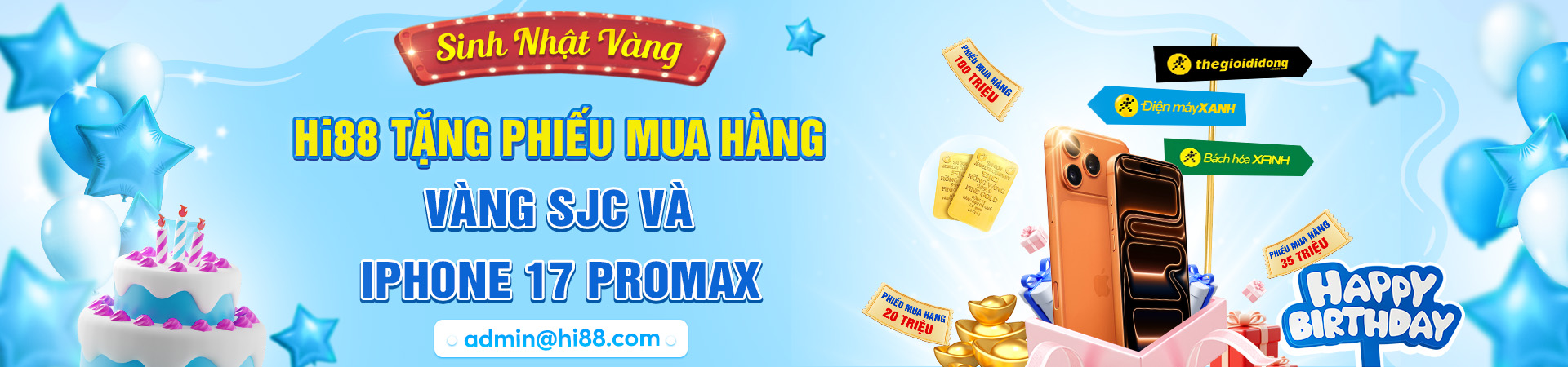 Sự kiện 4: Hi88 TẶNG PHIẾU MUA HÀNG -VÀNG SJC VÀ IPHONE 17 PROMAX